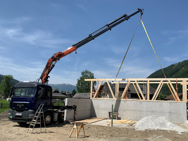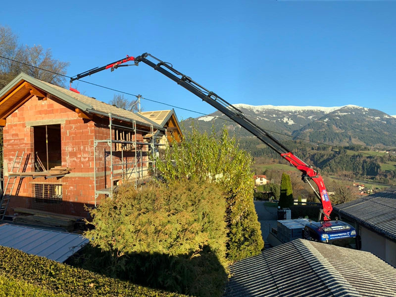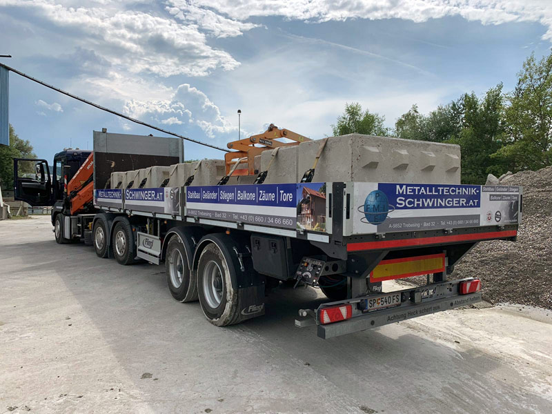 Betonfertigteile, Schalungen, Baumaschinen-Transporte, Dachbekiesung, Deckenelemente und Stiegen