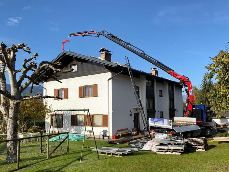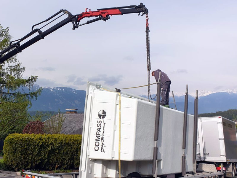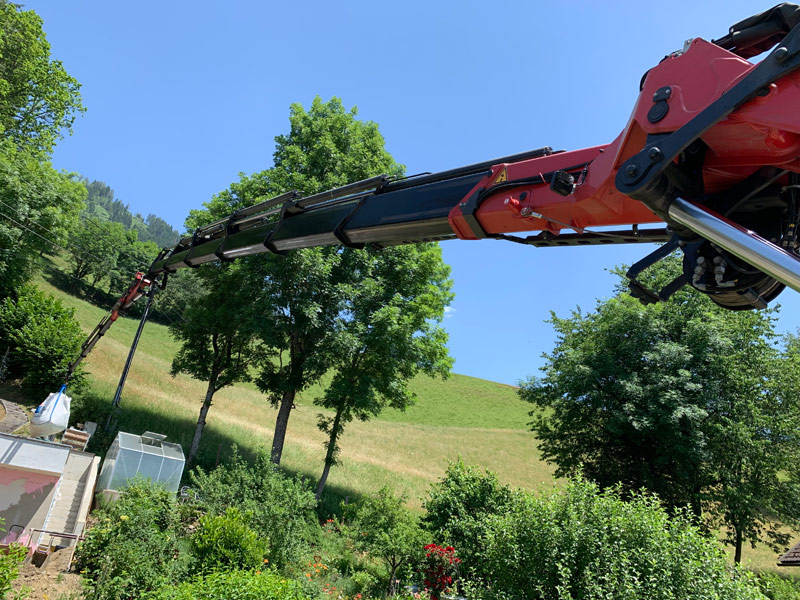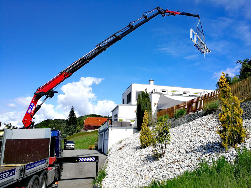 Arbeitskörbe z.B. für Baumschnitte oder Fassadeninstandhaltung, Klimageräte heben, Fotovoltaikanlagen auf Dächer versetzen, Swimmingpools heben und vieles mehr.